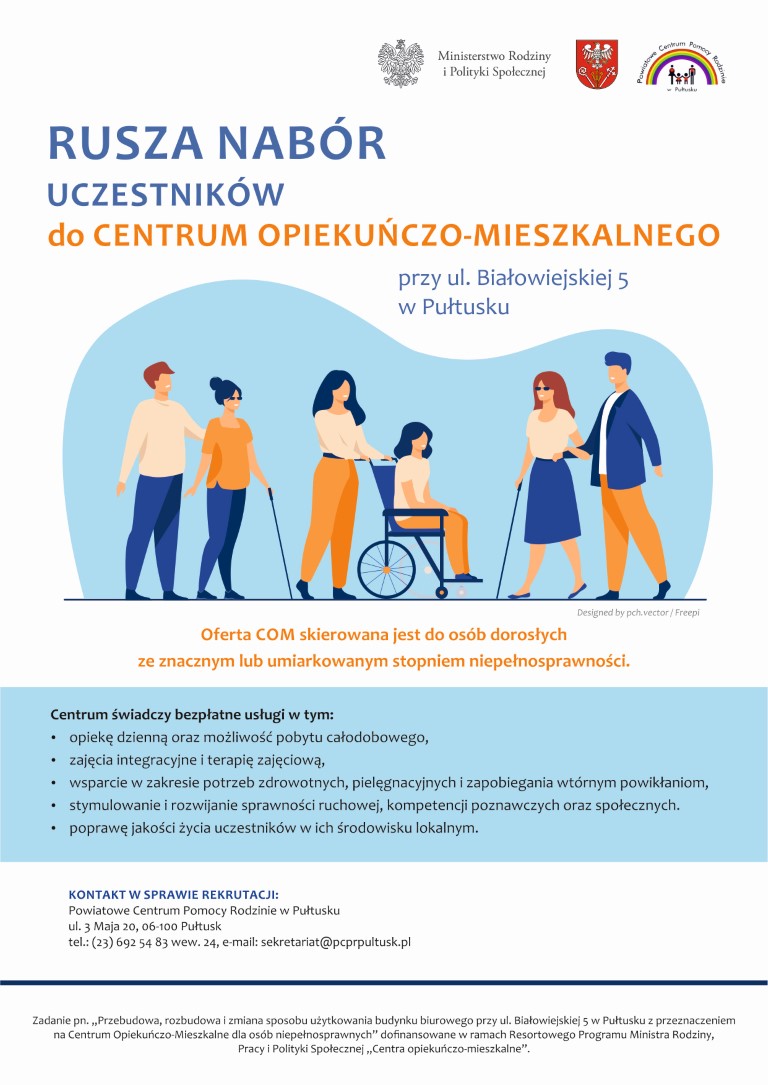 Utworzenie Centrum Opiekuńczo-Mieszkalnego to doskonałe uzupełnieniem systemu wsparcia osób niepełnosprawnych na terenie powiatu pułtuskiego.